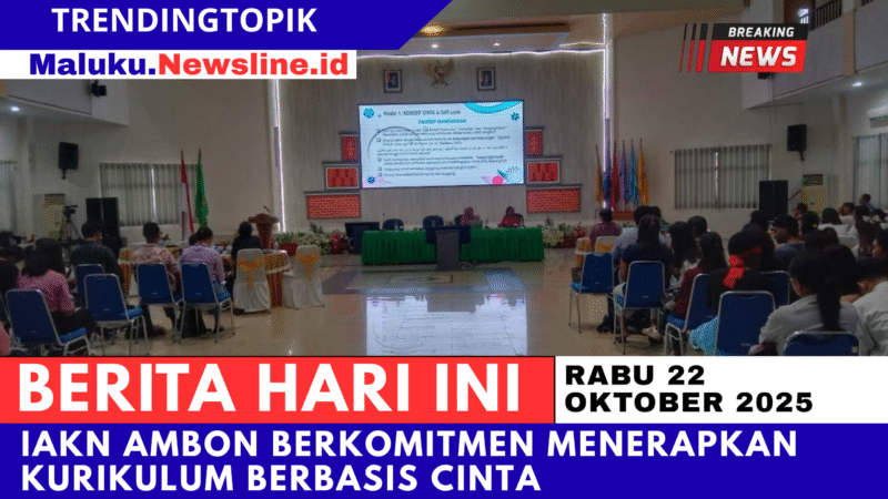MALUKU, AMBON | Maluku.Newsline.id — Sejak diluncurkannya Kurikulum Berbasis Cinta (KBC) oleh Kementrian Agama pada 24 juli 2025, implementasinya pun mulai dilaksanakan secara bertahap di berbagai sekolah hingga perguruan tinggi. Salah satu perguruan tinggi yang saat ini menjalani tahapan penerapan Kurikulum Berbasis Cinta ini ialah Institut Agama Kristen Negeri (IAKN) Ambon melalui Seminar Nasional yang diselenggarakan oleh Fakultas Ilmu Sosial Keagamaan dengan mengusung tema “Menenun Cinta, Merawat Keberagaman: Kontribusi Perguruan Tinggi Kristen Dalam Membangun Perubahan Damai”. Kegiatan ini berlangsung sekitar pukul 09.00-13.00 WIT bertempat di gedung Auditorium IAKN Ambon.