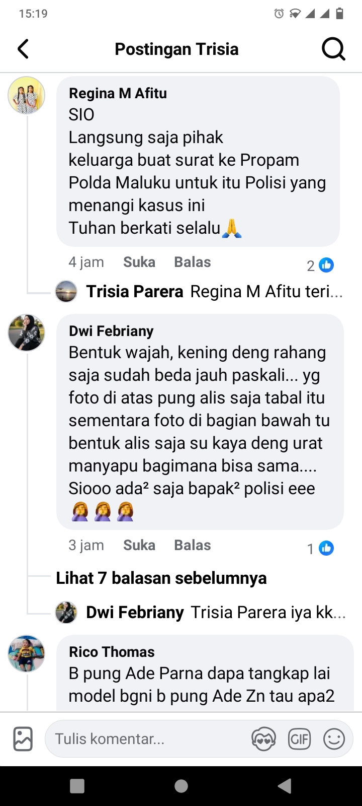 Komentar lain juga menyoroti perbedaan fisik antara korban dan sosok dalam rekaman CCTV. “Ktong yg seng kanal orang ini saja bisa tau ini orang beda sekali.. Astaga ee,” tulis akun Facebook thia ollshoop.